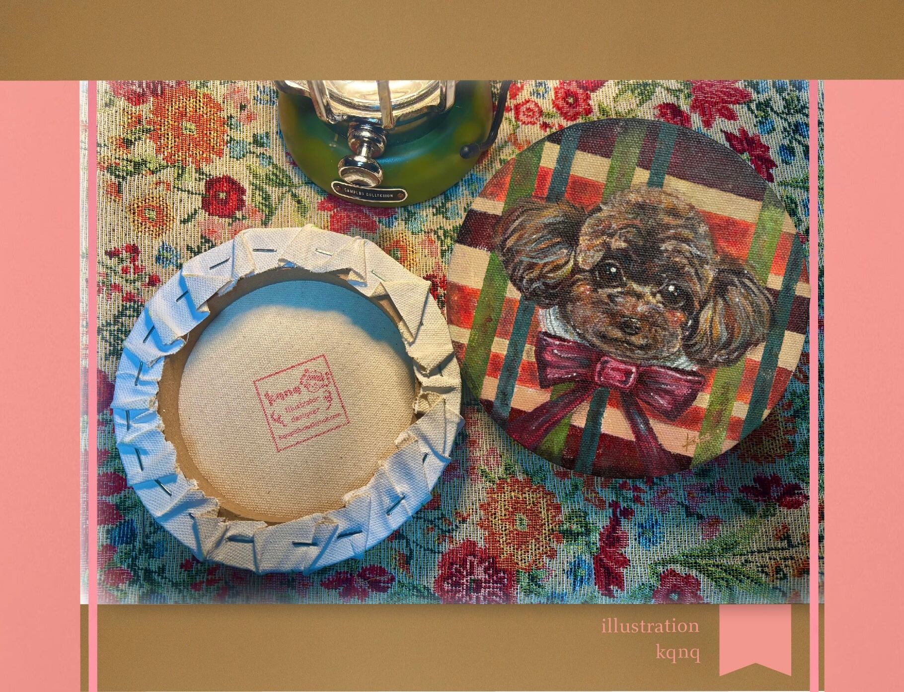 布張りされた 丸いキャンバスに
